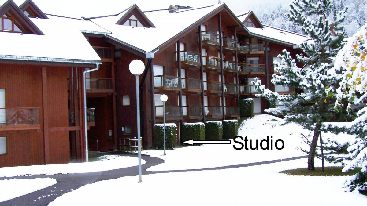 C'est un studio meublé de 25 m2 env. avec une terrasse de 6 m2 env., situé à 150 m du télécabine, dans l'immeuble résidentiel :